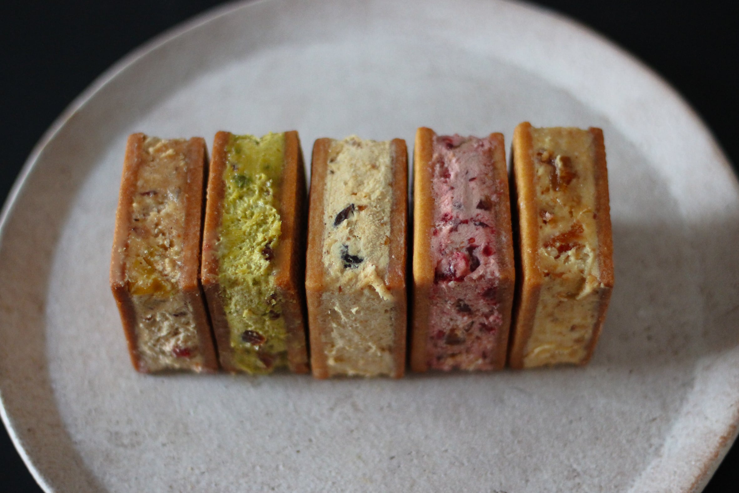 ベースのバタークリームはバニラをたっぷりと使用してしっかり空気を含ませて軽く、滑らかに。サンドするクッキー生地に負けない保形性を残しつつバタークリームとは思えないような軽さに仕上げています。